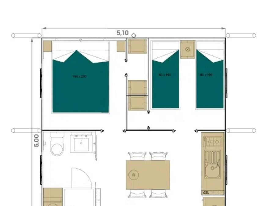 Mobilhome 6 personnes - Mobilhome GLENAN Standard 33m² - 3 chambres