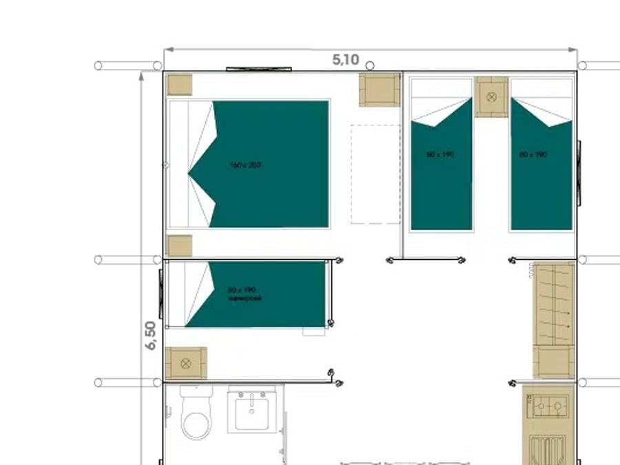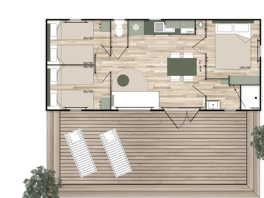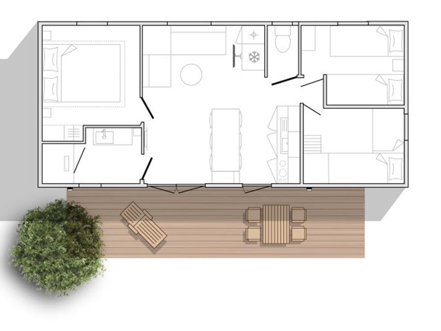Mobilhome 6 personnes - ARCHIPEL Premium 30m² - 3 chambres / Terrasse couverte