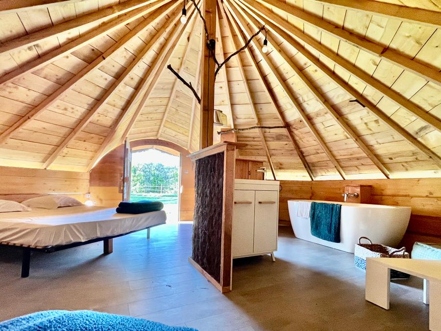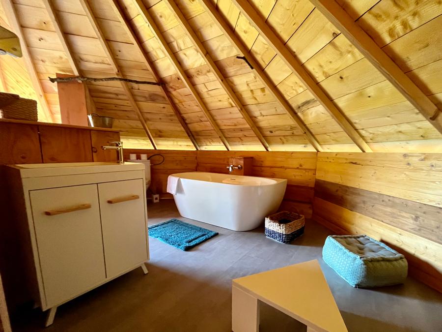 - Grande cabane toute équipée avec 2 chambres séparées, et qui représente un emplacement unique sur notre éco-site, le domaine d'Escapa