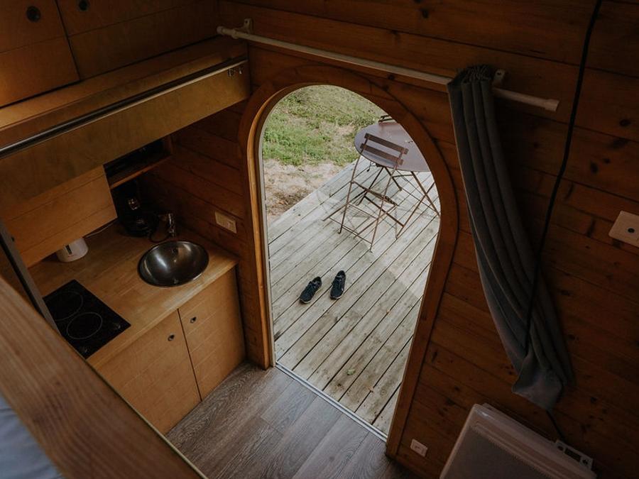 Éco-pensées mais parfaitement équipées: kitchenette (plaque de cuisson, réfrigérateur, micro-ondes, cafetière), évier et sanitaires privatifs.