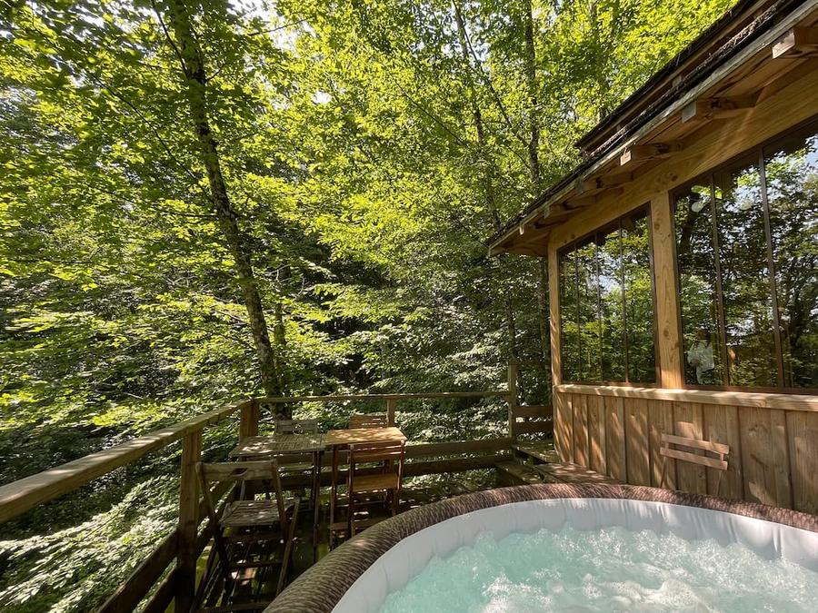 Insolite 6 personnes - Cabane perchée familiale avec jacuzzi dans les bois 1/6 pers