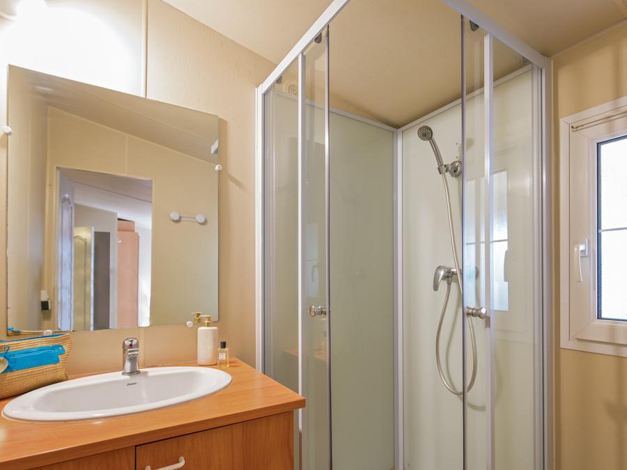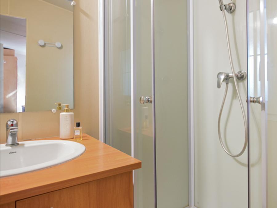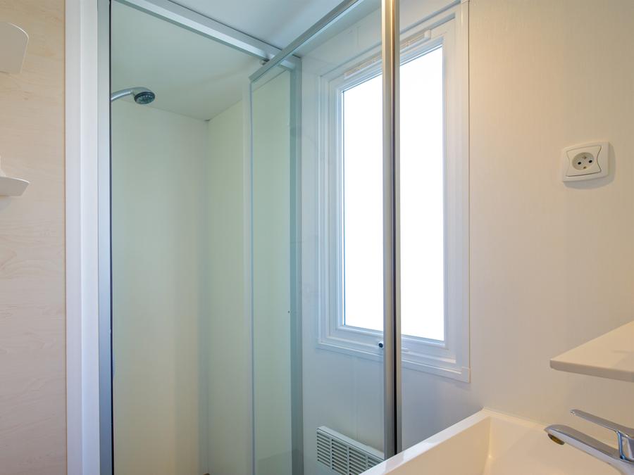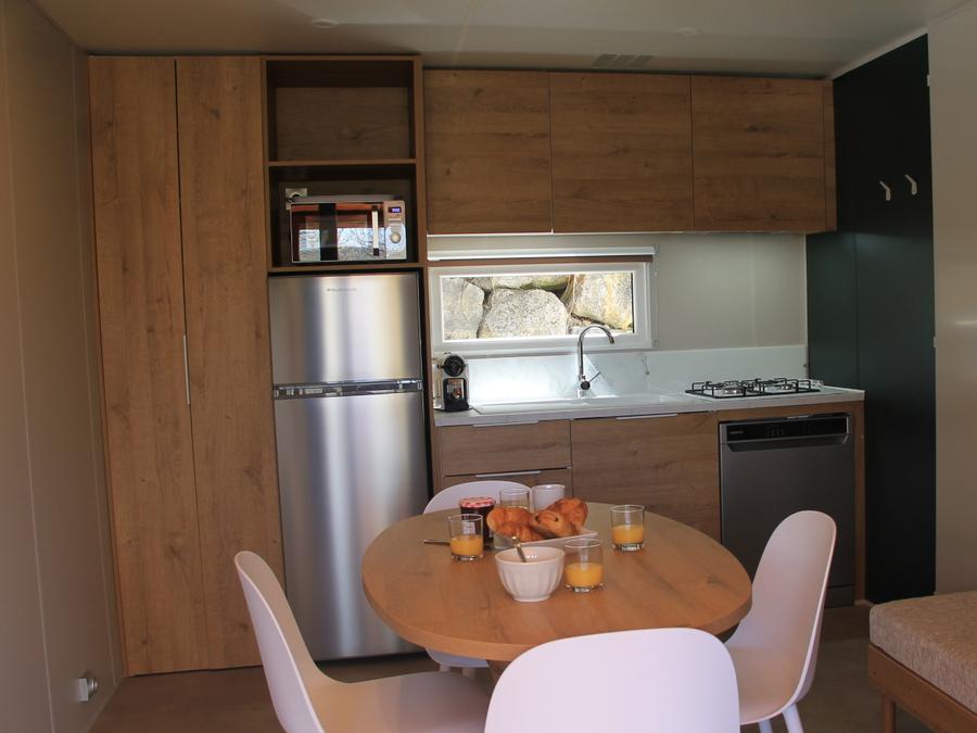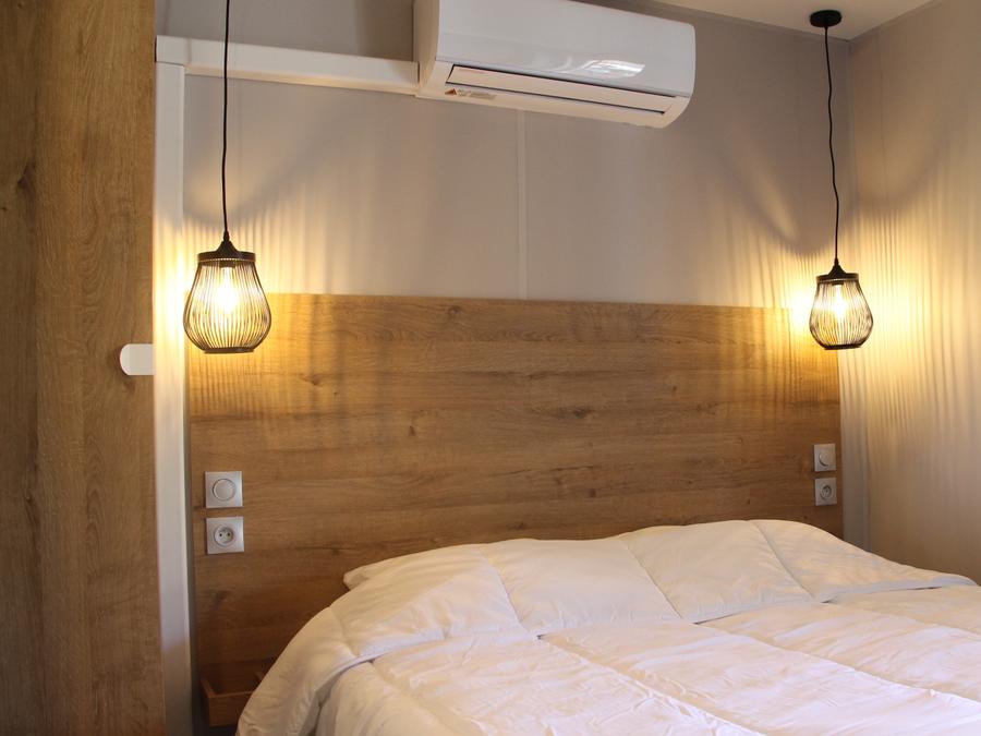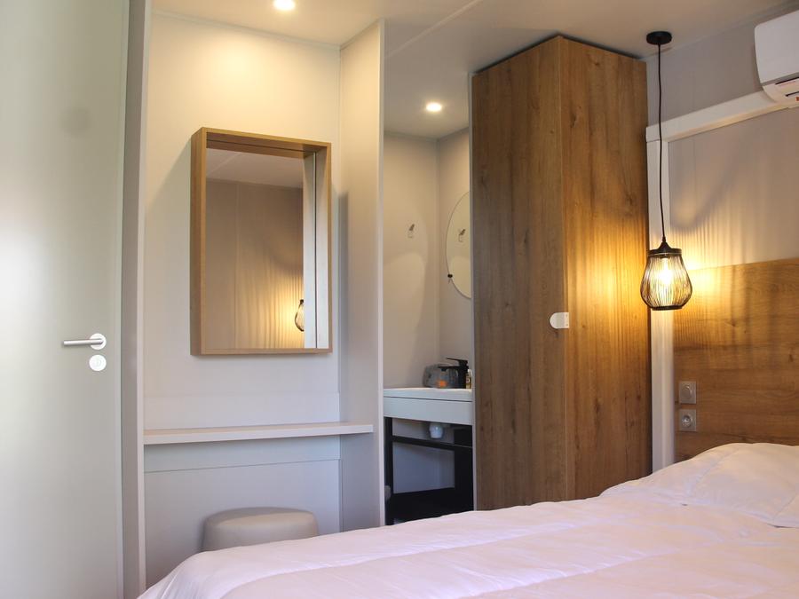 - Découvrez ce nouveau modèle climatisé pour 4 personnes ! Ce cottage est composé de 2 chambres parentales avec un lit de 160x200, salles de bain/WC attenants. Chaque chambre dispose d'un accès direct à la terrasse. Sa cuisine ouverte sur le séjour comprend 4 feux gaz, un réfrigérateur-congélateur, hotte, micro-onde, une cafetière espresso et un lave-vaisselle. TV écran plat, climatisation. Salle de douche et WC séparé dans chaque chambre. A l’extérieur, vous disposez d'une terrasse entièrement couverte avec le salon de jardin et 1 bain de soleil. *Photos non contractuelles