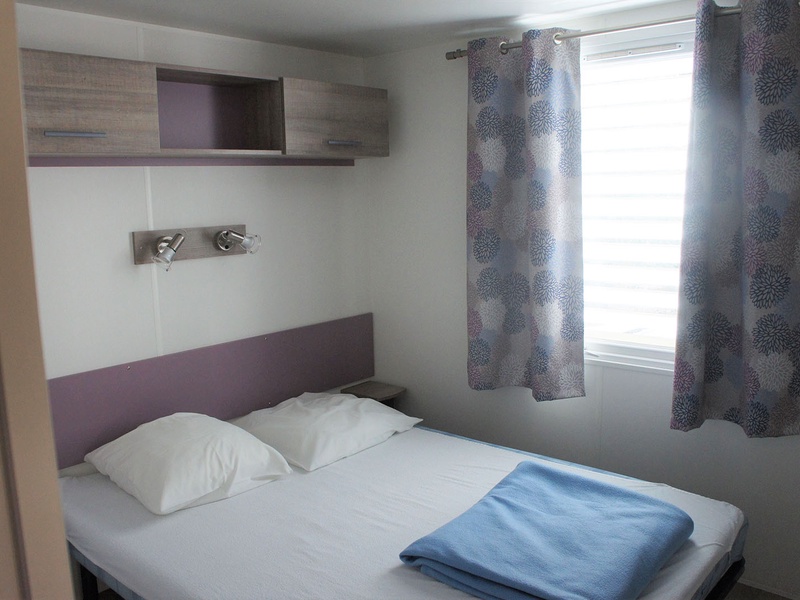 M6 type Mobile-Home Figarella - 6 personnes (environ 30m² + terrasse semi couverte 8m²) : 1 chambre avec 1 grand lit en 140 + 2 chambres avec 2 lits simples en 80.