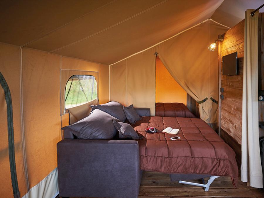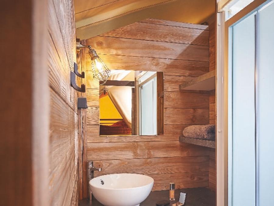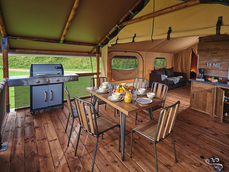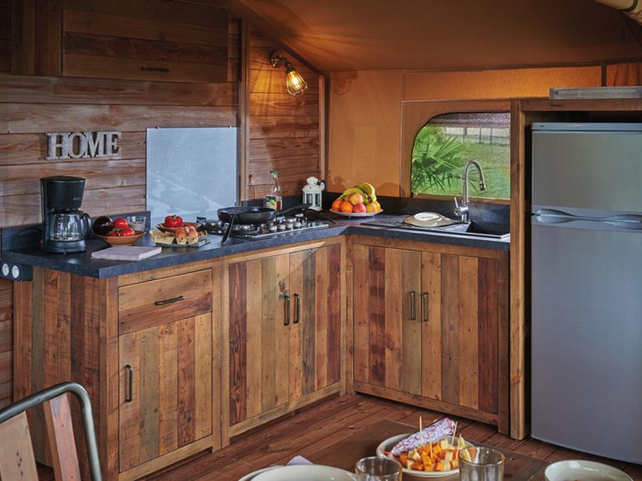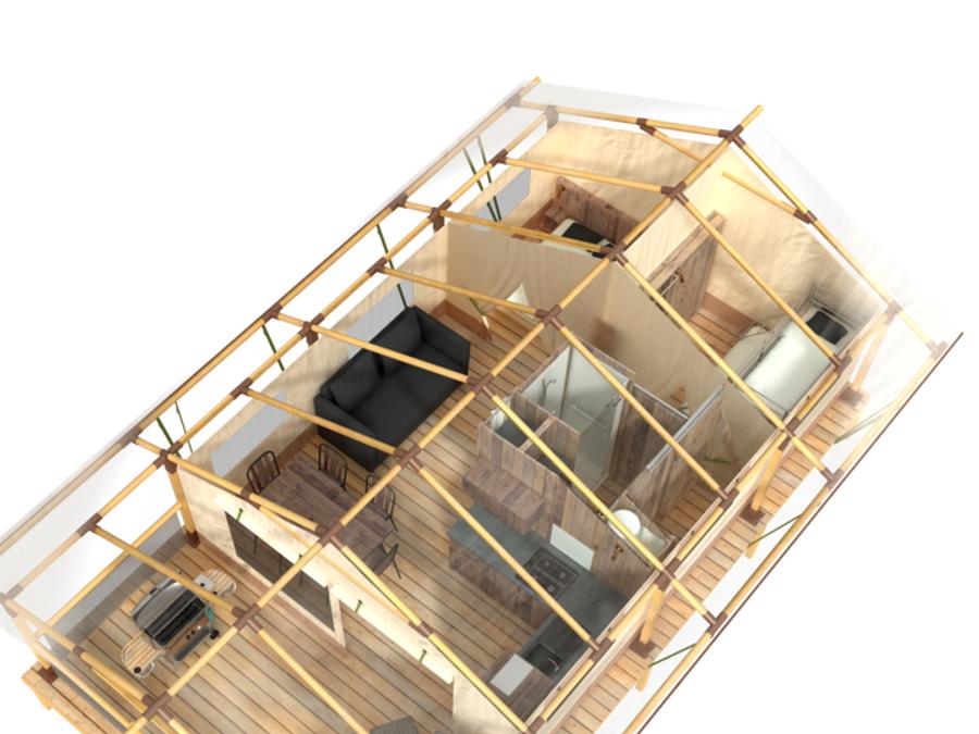 Tente en toile et en bois 5 personnes - Tente Ciela Nature Lodge - 2 chambres - Cuisine équipée – Salle de bain