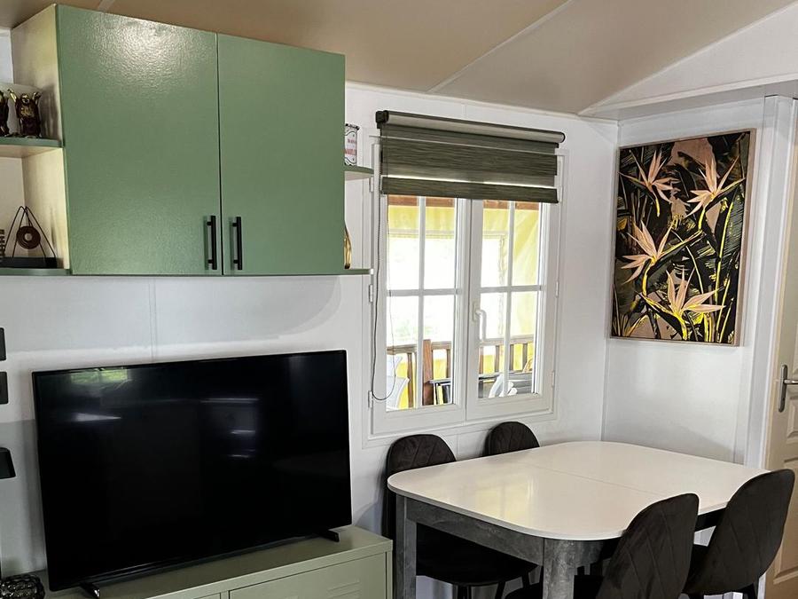 Mobilhome 6 personnes - Confort 40m² (3ch- 6 pers) -avec terrasse + SDB+ Lave-linge + Clim+ Plancha+ salon jardin