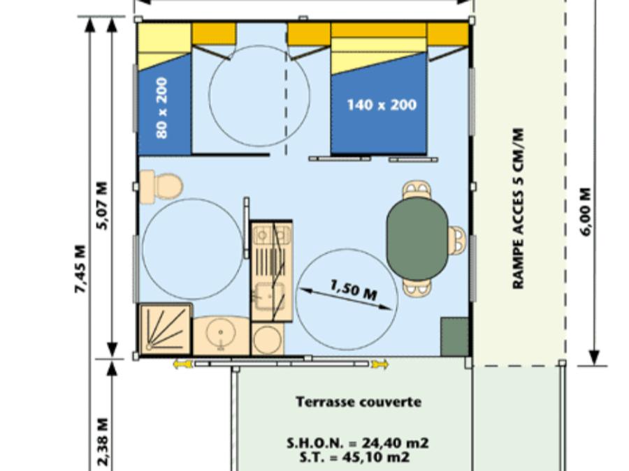 Surface, composition, chambre(s): la composition, les dimensions de l'hébergement et des couchages peuvent varier d'un logement à l'autre. Elles sont données à titre d'exemple et sont non contractuelles.