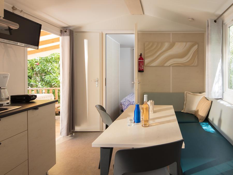 - Les plus : Un mobil-home bien équipé avec télévision, lave-vaisselle, climatisation et Wifi.