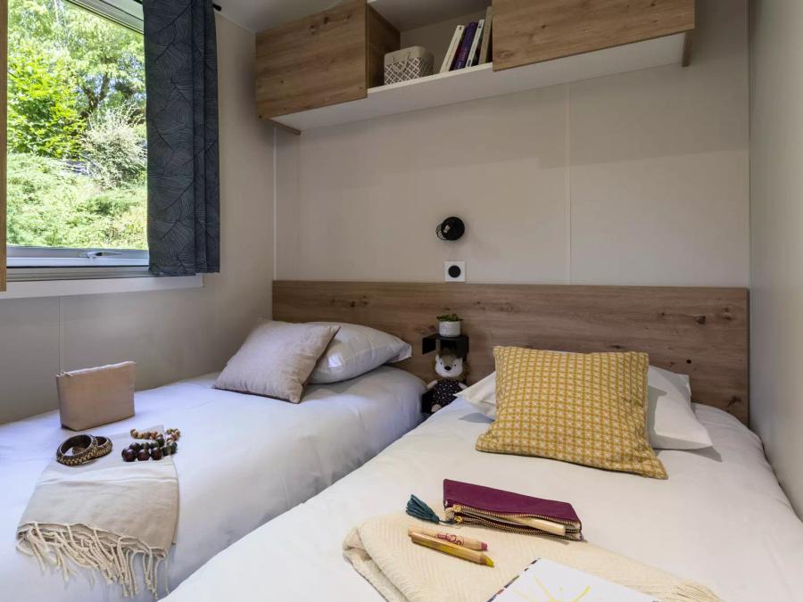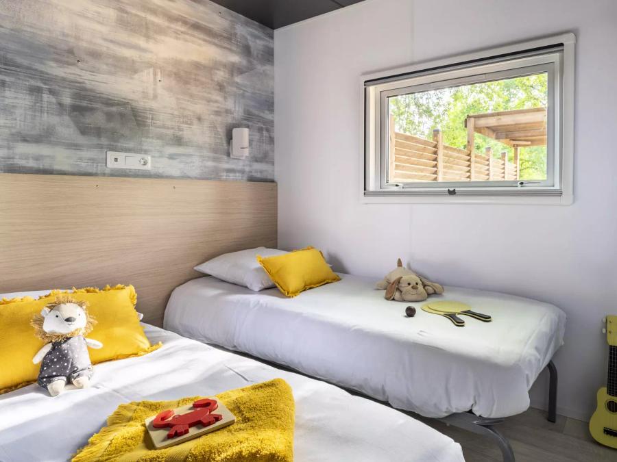 Les tailles de lits mentionnées sont données à titre indicatif. Il est possible d’avoir de légères différences de tailles selon les modèles de locatifs et leurs millésimes. La disposition des lits et la décoration peuvent également varier.