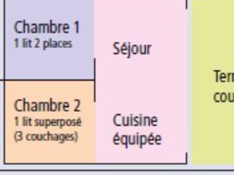 Surface, composition, chambre(s): la composition, les dimensions de l'hébergement et des couchages peuvent varier d'un logement à l'autre. Elles sont données à titre d'exemple et sont non contractuelles.