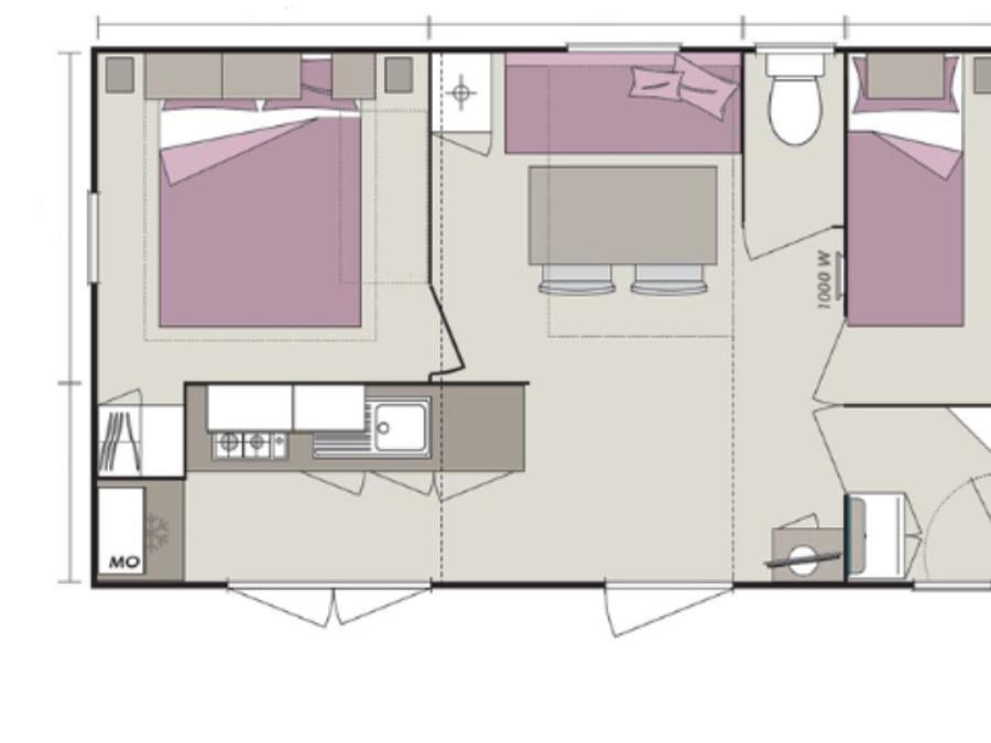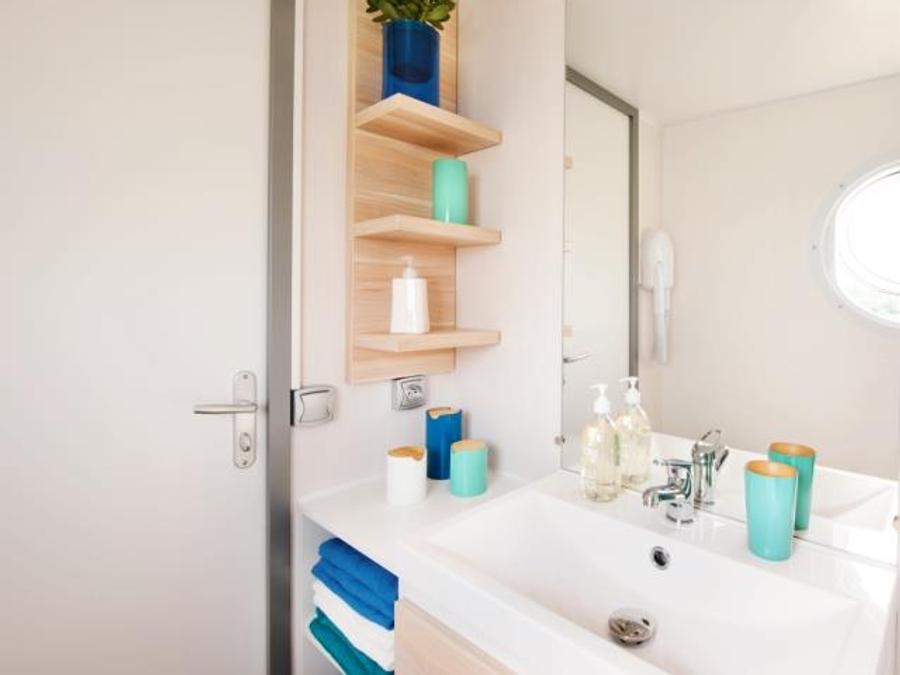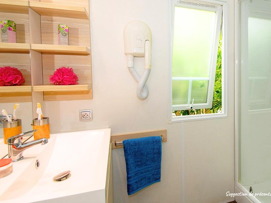 Mobilhome 6 personnes - Homeflower Premium 35m² (3 chambres) + CLIM + terrasse semi-couverte + TV + draps + serviettes