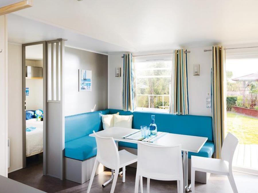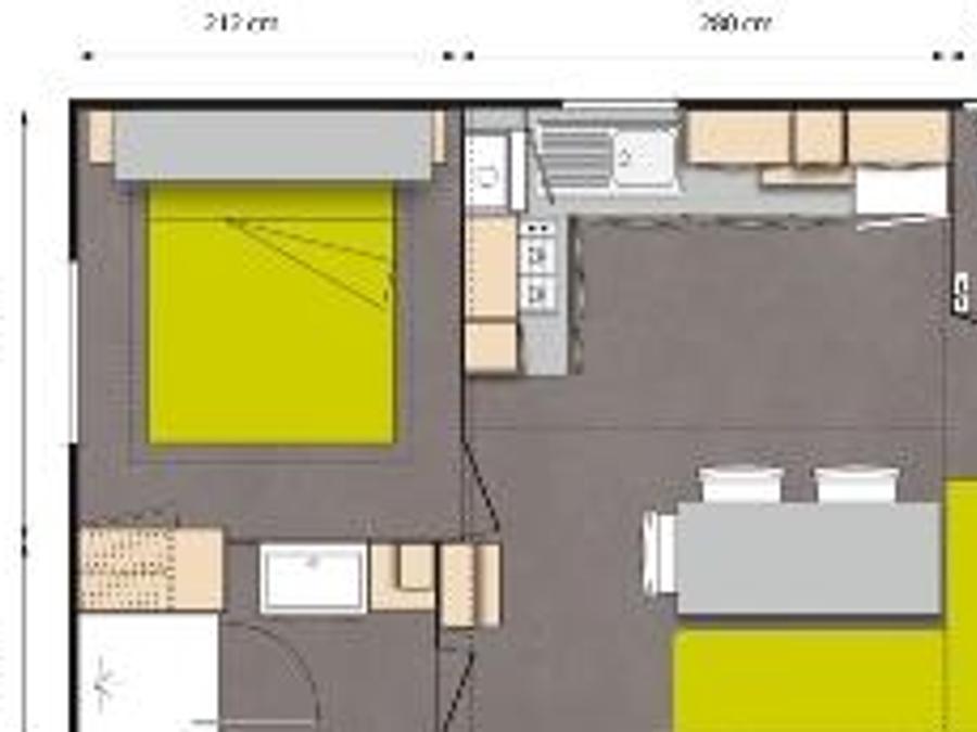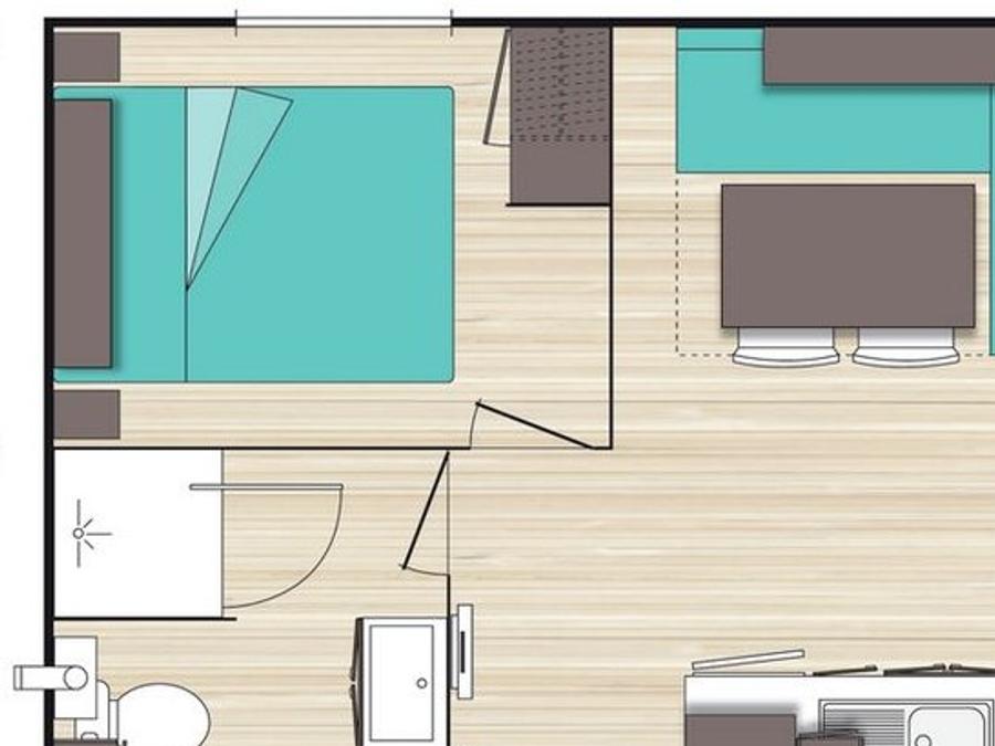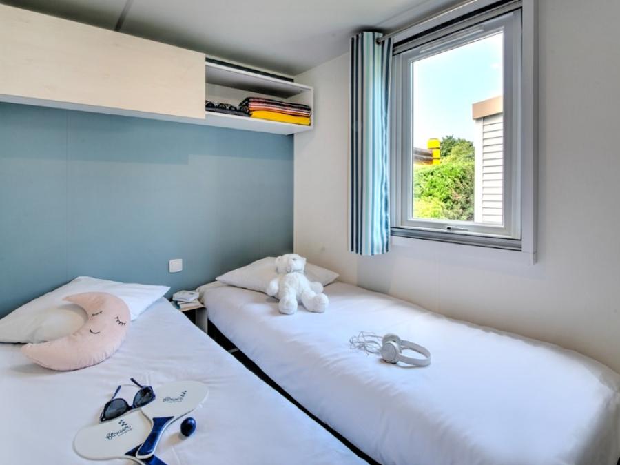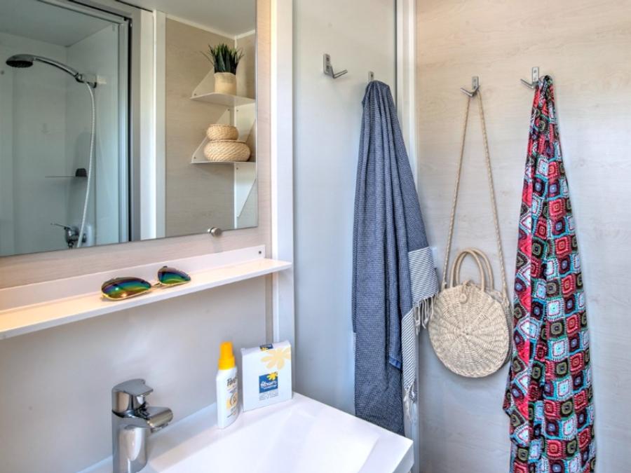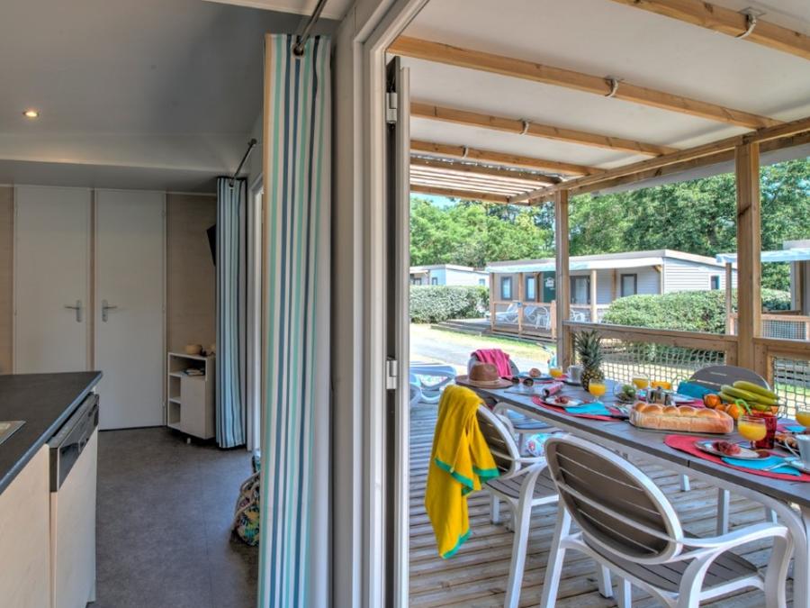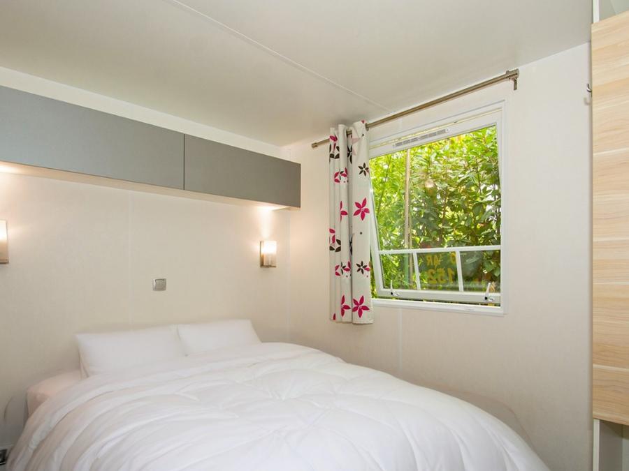 Mobilhome 4 personnes - Homeflower Premium 29m² (2 chambres) + CLIM + terrasse semi-couverte + TV + draps + serviettes