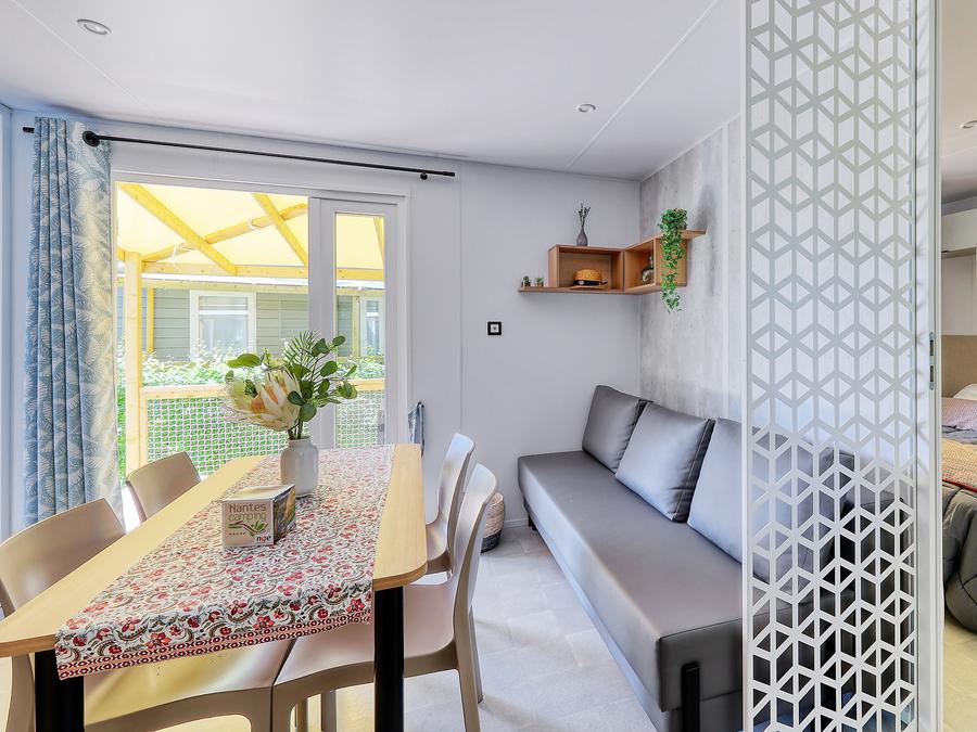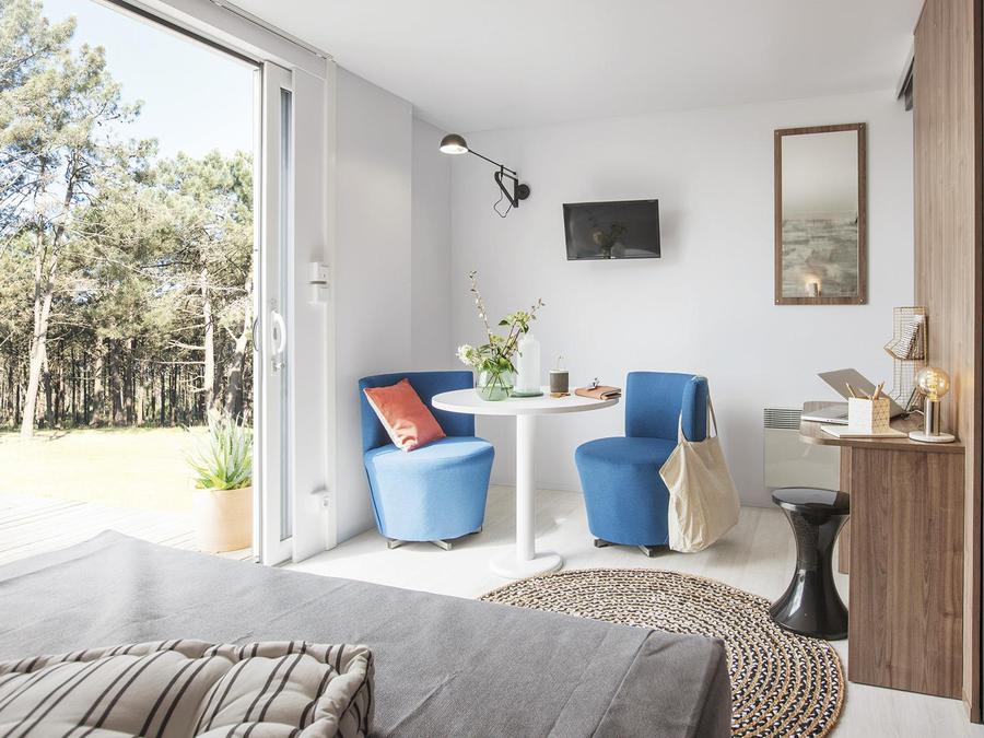 - Séjournez dans un hébergement modulable qui s'adapte à vos besoins : transformez le coin salon en une 2ème chambre grâce au canapé convertible ou préférez un espace bureau en conservant les places assises. Une location idéale pour les petits budgets !