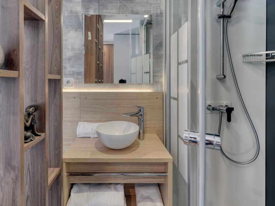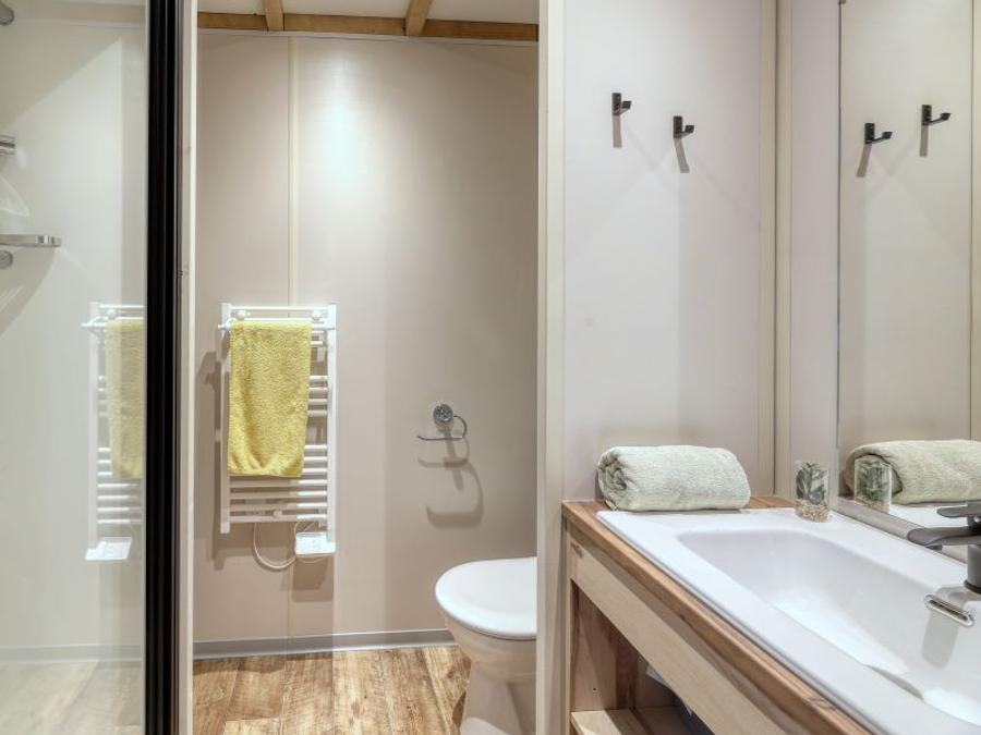 - A l'intérieur de ce chalet mitoyen, bénéficiez d'un espace optimisé à la fois fonctionnel et parfaitement équipé, combiné aux prestations d'un 5 étoiles : TV, Wifi … Profitez également de la terrasse ombragée et de sa vue exceptionnelle sur le domaine.