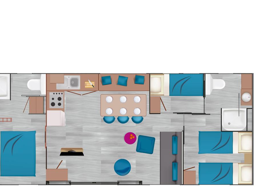Mobilhome 6 personnes - Cottage Atlantique 3 chambres + 2 salles de bain 40m² + Spa