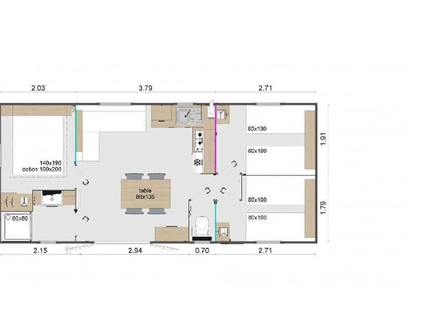 Surface, composition, chambre(s): la composition, les dimensions de l'hébergement et des couchages peuvent varier d'un logement à l'autre. Elles sont données à titre d'exemple et sont non contractuelles.