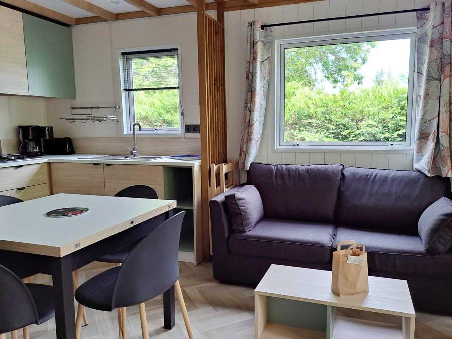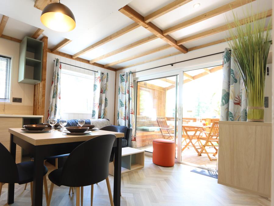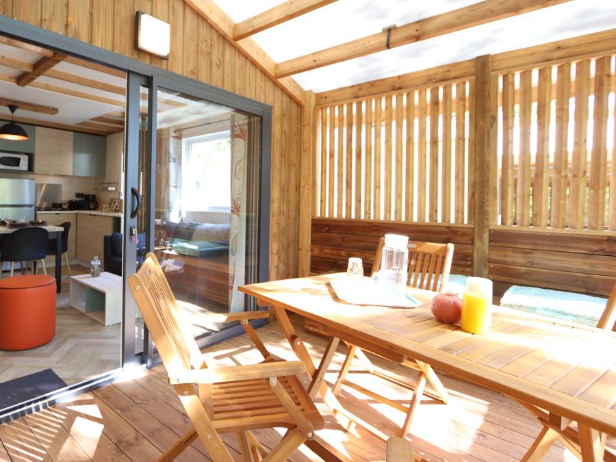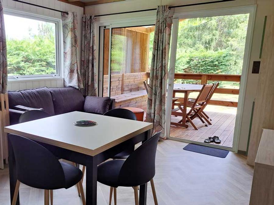 Mobilhome 7 personnes - Gamme FAMILY Chalet PORTLAND- Grande baie vitrée pour accéder à la terrasse : luminosité garantie!