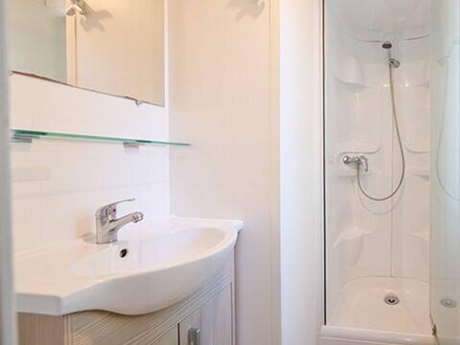 - Le Cottage Next L est l'un de nos mobil-homes les plus luxueux et les plus confortables. Il a une superficie de 25 m2 et peut accueillir jusqu'à 5 personnes réparties comme suit : 2 chambres à coucher, l'une avec un lit double, l'autre avec 2 lits simples et un lit pliant simple. Il dispose d'une salle de bain complète et d'une salle de bain avec toilettes et lavabo dans la chambre double. Il dispose de l'air conditionné et d'une cuisine. Les animaux ne sont pas admis.