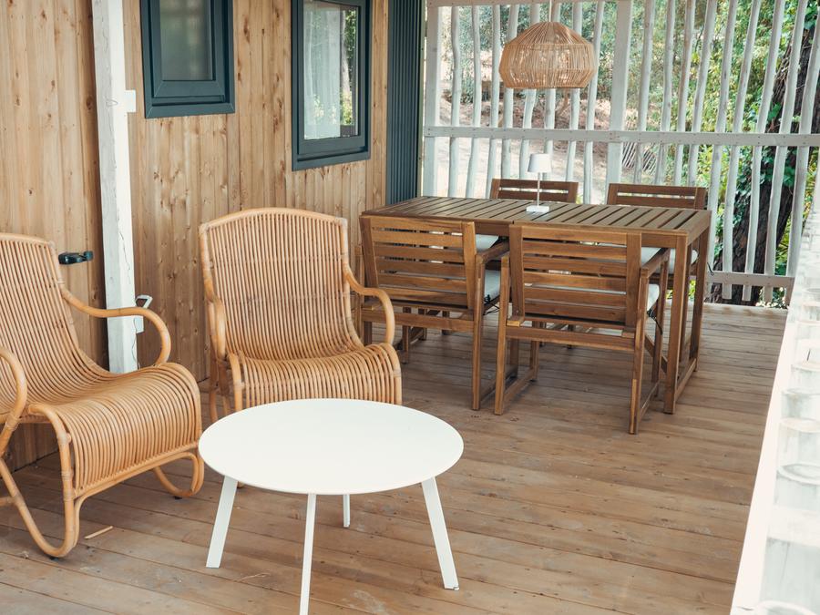 - Le Next XL Panorama Cottage est situé dans la zone la plus pittoresque et la plus paisible de notre glamping. D'une superficie de 36 m2, il comprend deux chambres (une chambre double et une chambre avec deux lits simples et un lit pliant) et une salle de bains qui les sépare, ainsi qu'un grand salon avec vue sur l'extérieur. Il dispose de l'air conditionné et d'une cuisine. Il dispose également d'une terrasse extérieure où vous pourrez passer vos soirées en profitant de moments de détente. Animaux non admis.