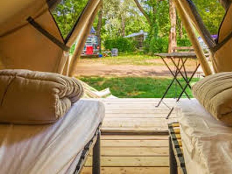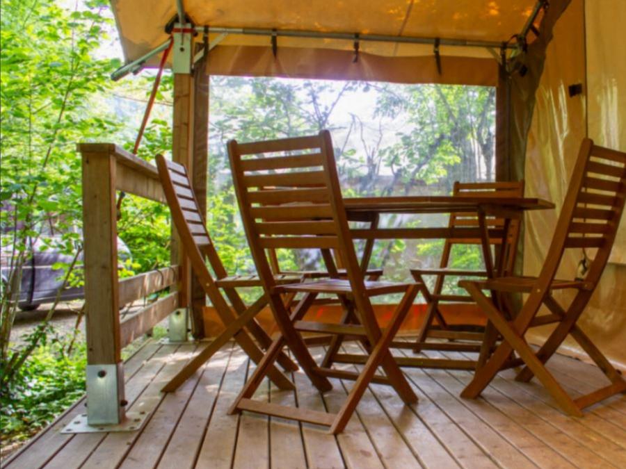 Tente 2 personnes - Prêt à camper 6m² 1 chambre - sans sanitaires + terrasse 3m² 2 pers