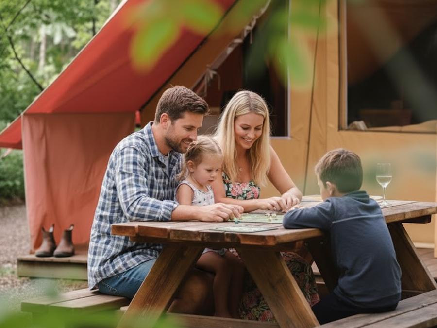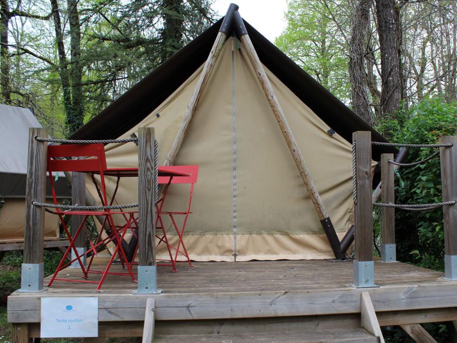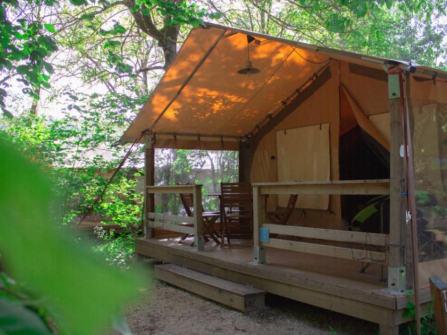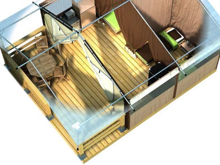 Tente 5 personnes - Eden Standard 30m² 2 chambres - sans sanitaires + Vue sur le Lot + terrasse couverte 11.5m²