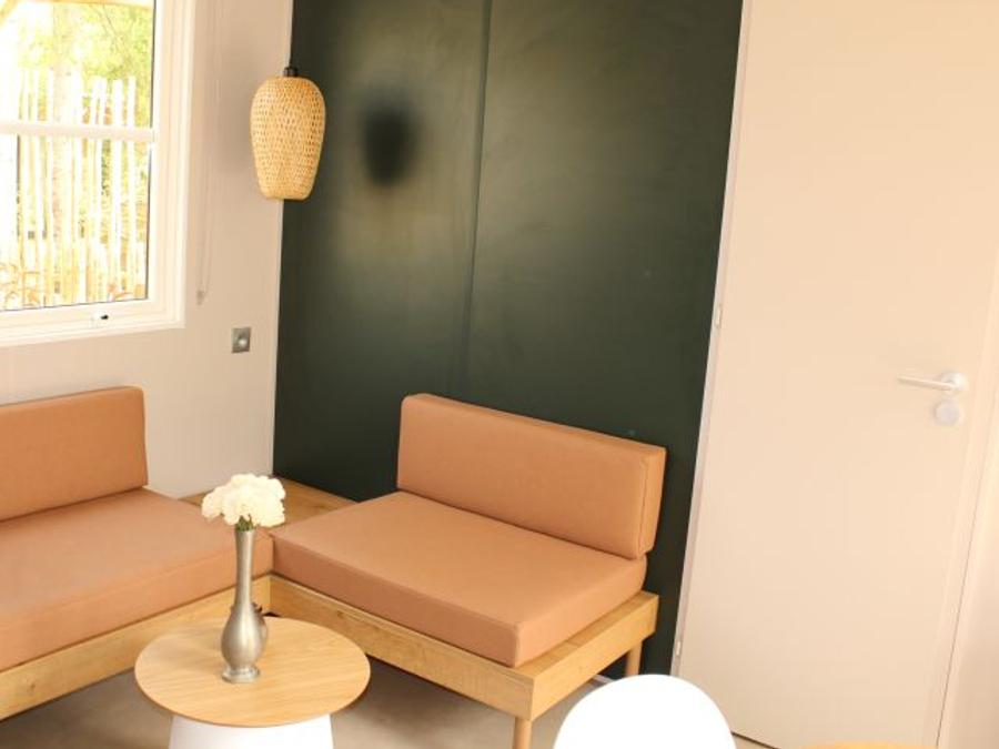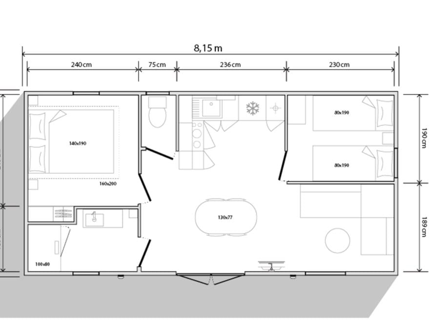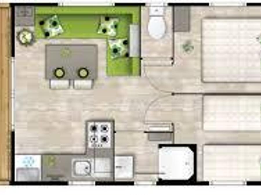Mobilhome 3 personnes - Standard 23.4m² 2 chambres + terrasse couverte 10m² - TV 1/3 pers
