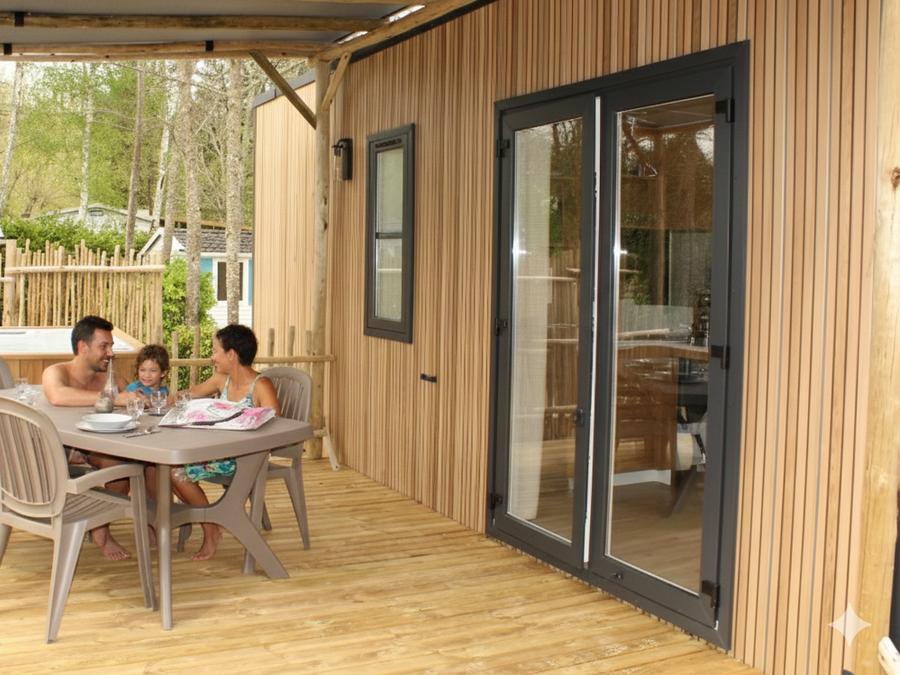 Mobilhome 6 personnes - Premium 40m² 3 chambres - 2 salles de bain + terrasse 25m² - TV - Clim - 6 pers