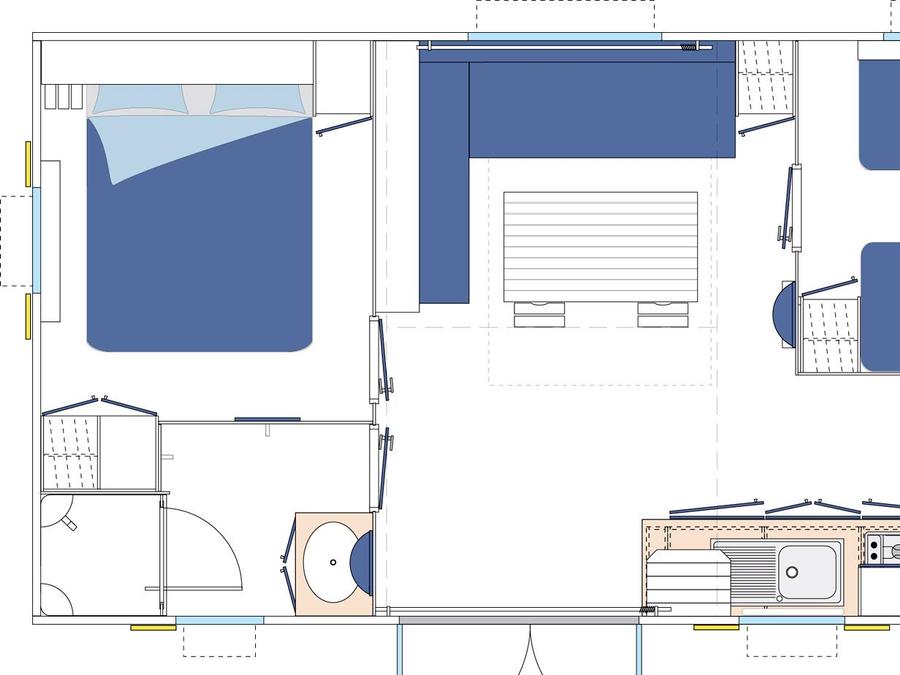 Surface, composition, chambre(s): la composition, les dimensions de l'hébergement et des couchages peuvent varier d'un logement à l'autre. Elles sont données à titre d'exemple et sont non contractuelles.