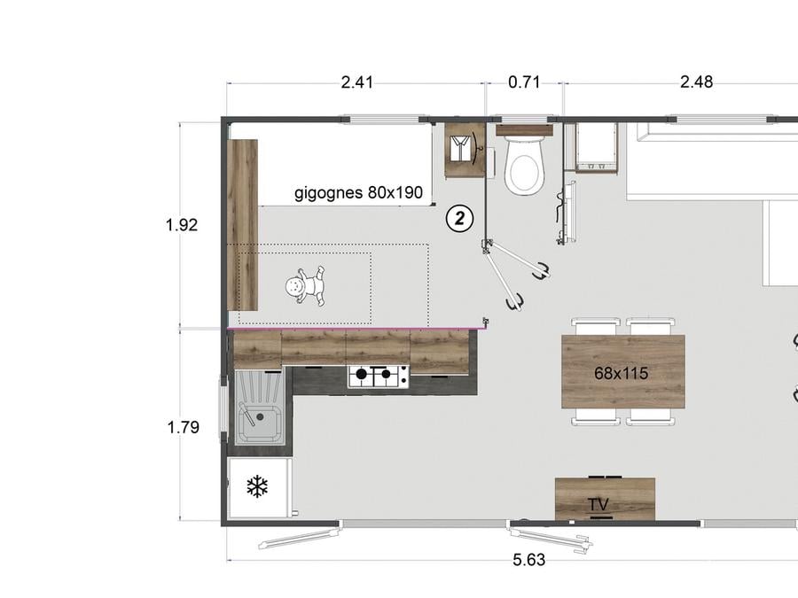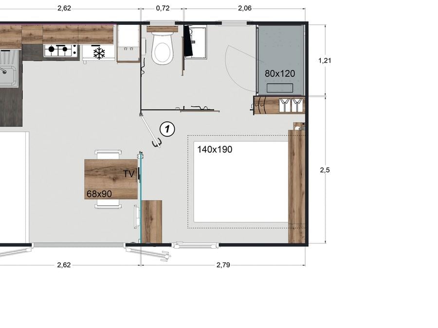 Mobilhome 2 personnes - Confort 18m² 1 chambre + terrasse couverte + climatisation + TV