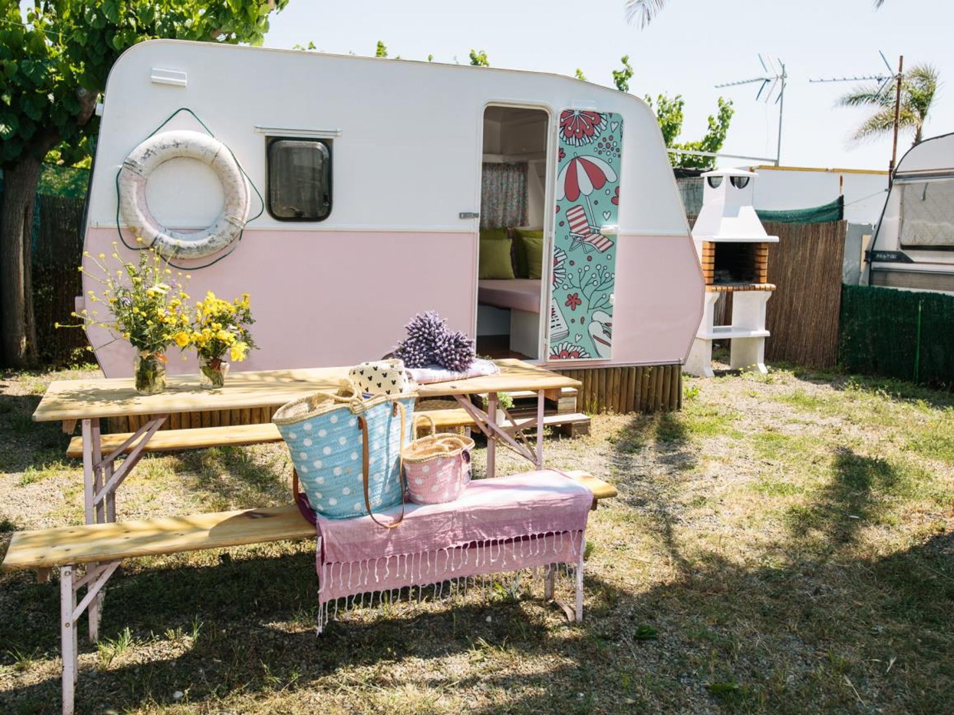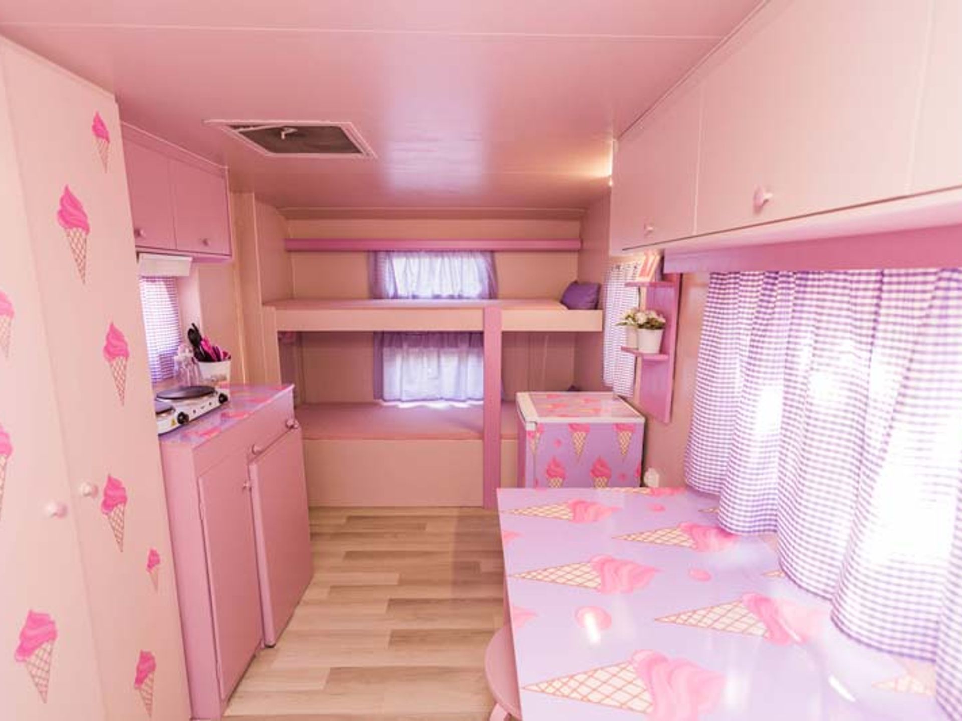 Caravane 4 personnes - ROSE CUPCAKE, sans sanitaires