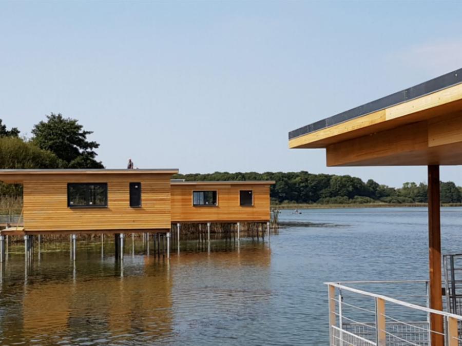- Nos 3 îles flottantes possèdent 1, 2 ou 3 chambres (pour 2, 4 ou 6 personnes) avec des lits doubles et des lits superposés, une cuisine équipée, un séjour, une salle de bains avec toilettes et une terrasse donnant une magnifique vue sur l’étang et ses environs. Prenez le petit déjeuner en contemplant le lever du soleil. En hiver, un poêle à pellets réchauffera l’ambiance.