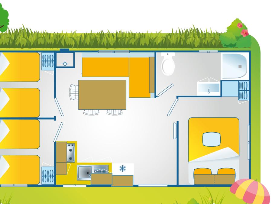 Mobilhome 6 personnes - Mobil-home | Comfort | 3 Ch. | 6 Pers. | Terrasse surélevée | 1 SDB | Clim.