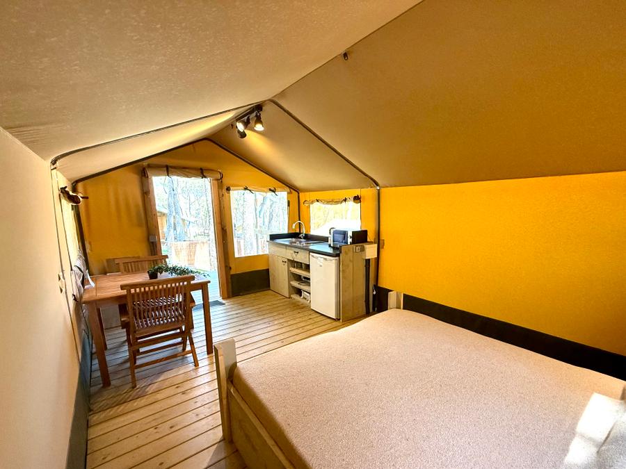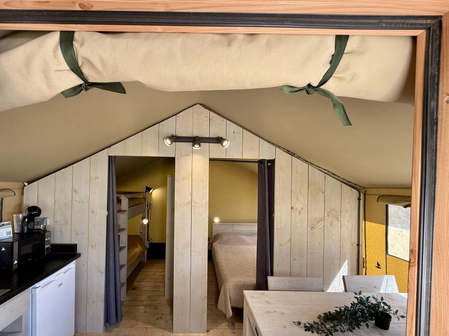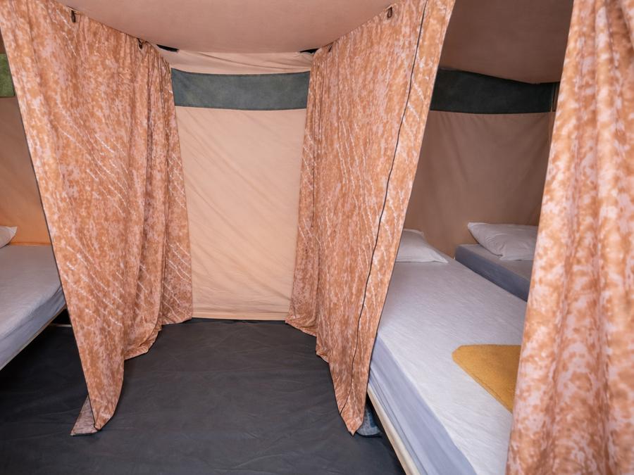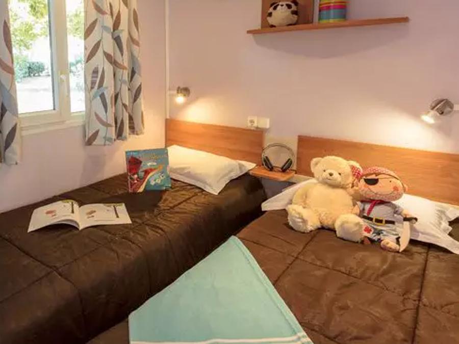 Les tailles de lits mentionnées sont données à titre indicatif. Il est possible d’avoir de légères différences de tailles selon les modèles de locatifs et leurs millésimes. La disposition des lits et la décoration peuvent également varier.