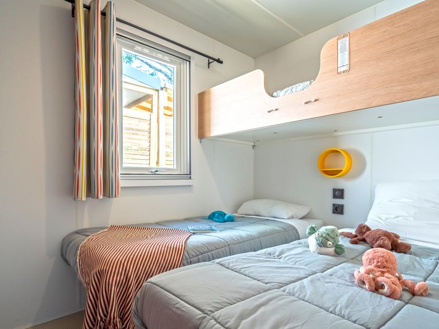 Les tailles de lits mentionnées sont à titre indicatif. Il est possible d’avoir de légères différences de tailles selon les modèles de locatifs et leurs millésimes. La disposition des lits et la décoration peuvent également varier.