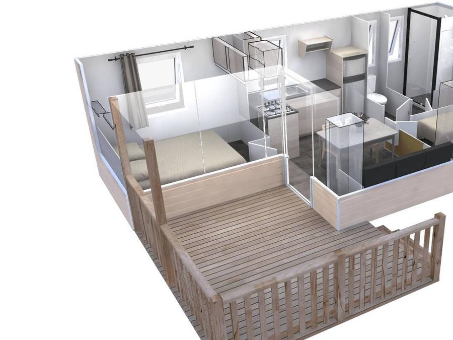 Mobilhome 6 personnes - Comfort | 3 Ch. | 6 Pers. | Terrasse surélevée | 1 SDB | Clim.