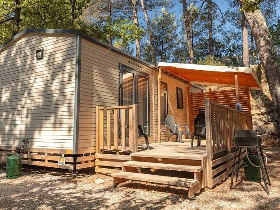 Mobilhome 6 personnes - Premium | 3 Chambres | 6 Couchages | Terrasse semi couverte | 1 Salle de bain | Climatisation | Télévision
