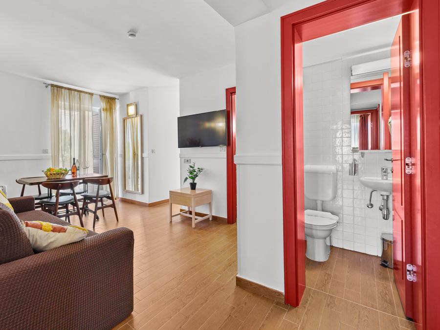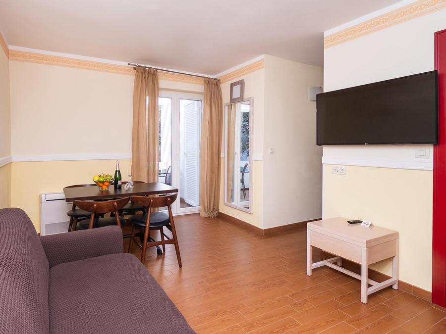 - 70 m2 (pour 4 adultes et 3 enfants jusqu'à 11,99 ans), comprend 2 chambres à coucher, une avec un lit double et une avec des lits jumeaux, une des chambres est équipée d'un canapé-lit qui peut être utilisé comme lit supplémentaire pour un enfant de moins de 11,99 ans, salon avec canapé-lit pour 2 enfants jusqu'à 11,99 ans, 1 salle de bain avec douche/WC, 1 salle de bain avec baignoire/WC, chauffage/climatisation, téléphone, SAT TV, 2 balcons.