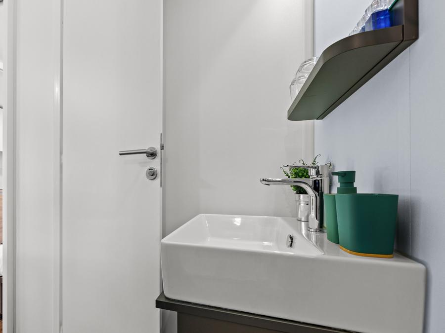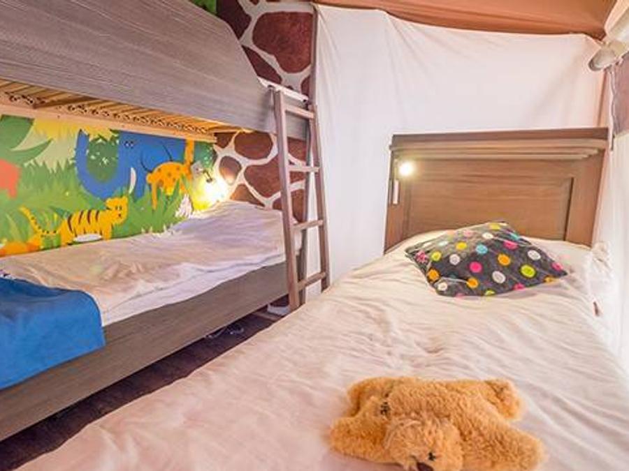 - 30 m2, convient pour max. 2 adultes et 2 enfants jusqu'à 11,99 ans, comprend une chambre à coucher (avec lit double/jumeau) avec salon et cuisine attenants, chambre avec 2 lits superposés, douche/Wc.