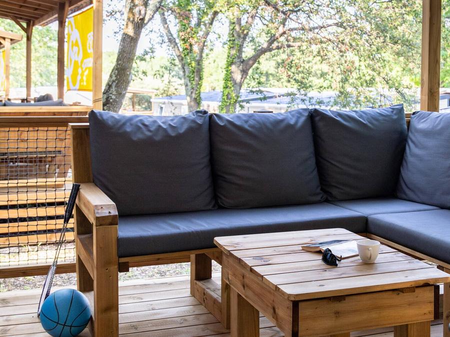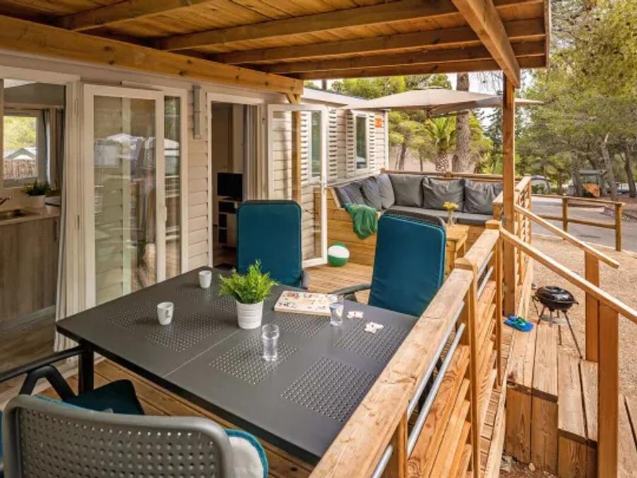 Mobilhome 7 personnes - Salon Premium avec 3 chambres - cuisine extérieure