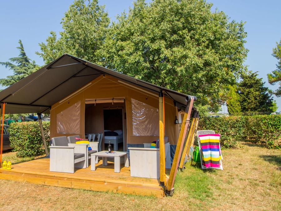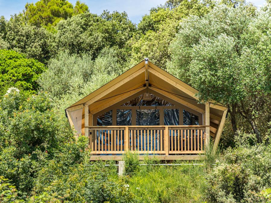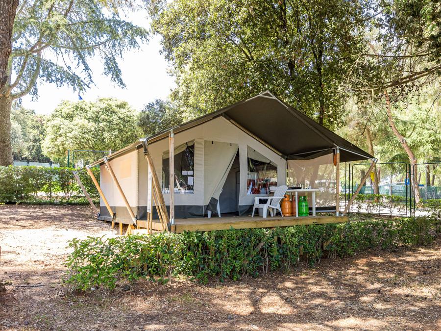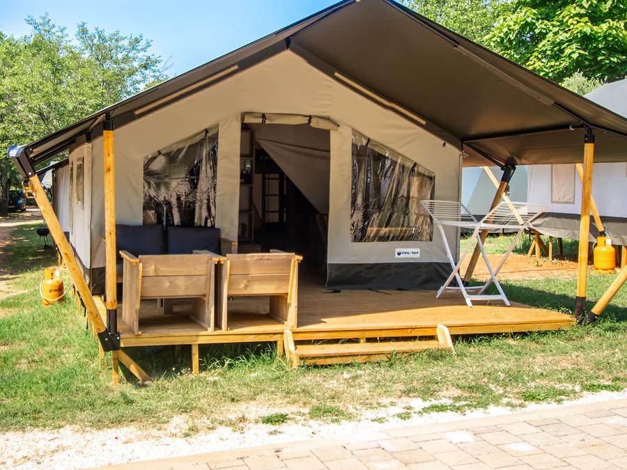 Tente en toile et en bois 5 personnes - Porto Sole - Tente Safari Bella Vista + air conditionné (5P)