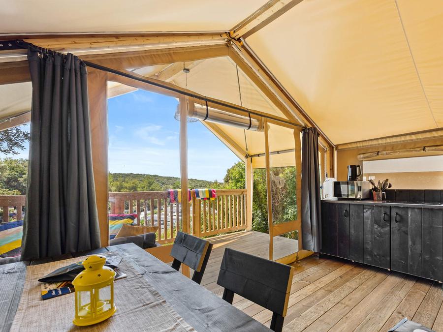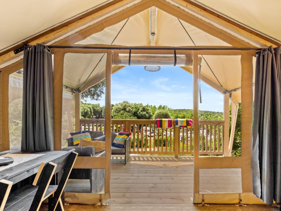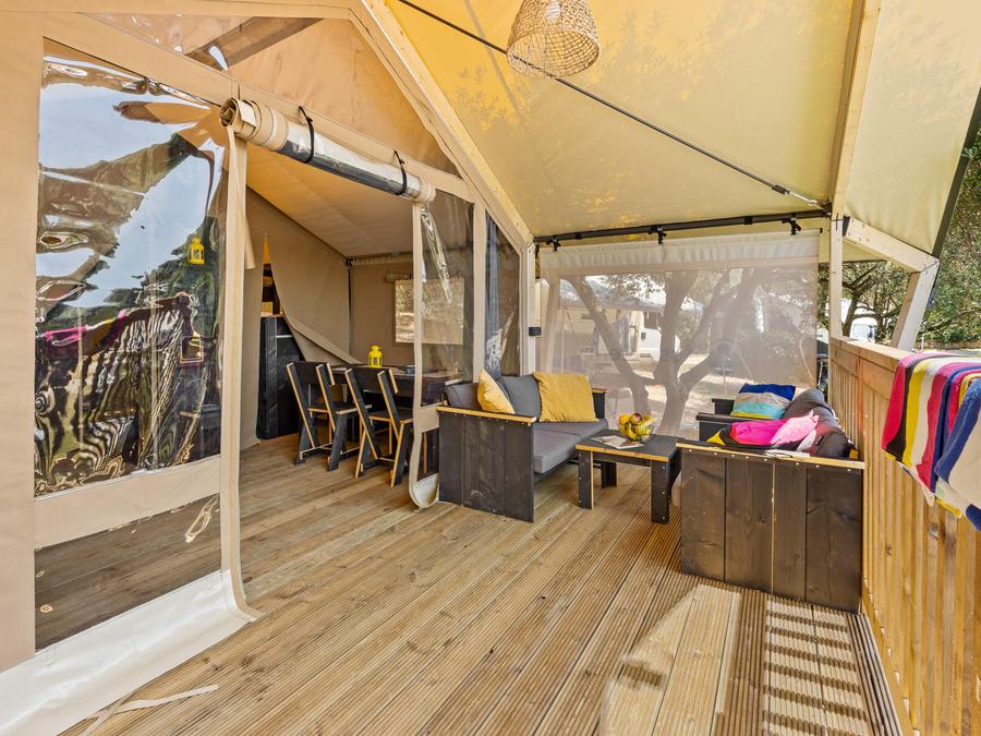 Tente en toile et en bois 5 personnes - Porto Sole - Tente Safari Confort + climatisation