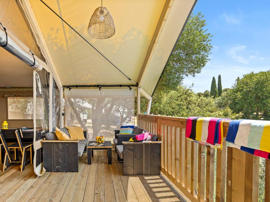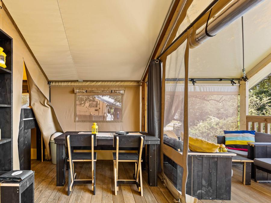 Tente en toile et en bois 6 personnes - Tente Safari Lodge | 3 Ch. | 6 Pers. | Terrasse surélevée | Clim.