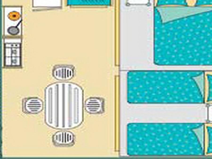 Mobilhome 6 personnes - 27,5m² Standard (2ch - 4/6pers.) + Clim + Paillotte extérieure