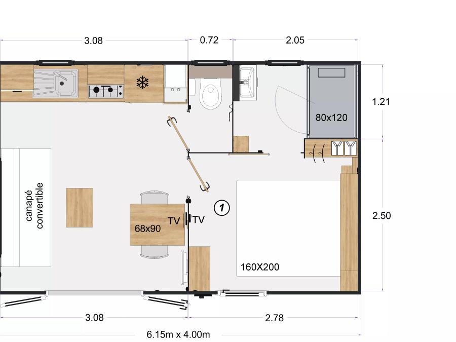 Mobilhome 4 personnes - Confort 3 Pièces 4 Personnes + TV