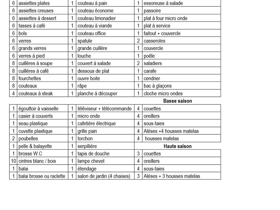 - Linge de lit: En option payante, 10,00 € par lit simple par séjour, 10,00 € par lit double par séjour