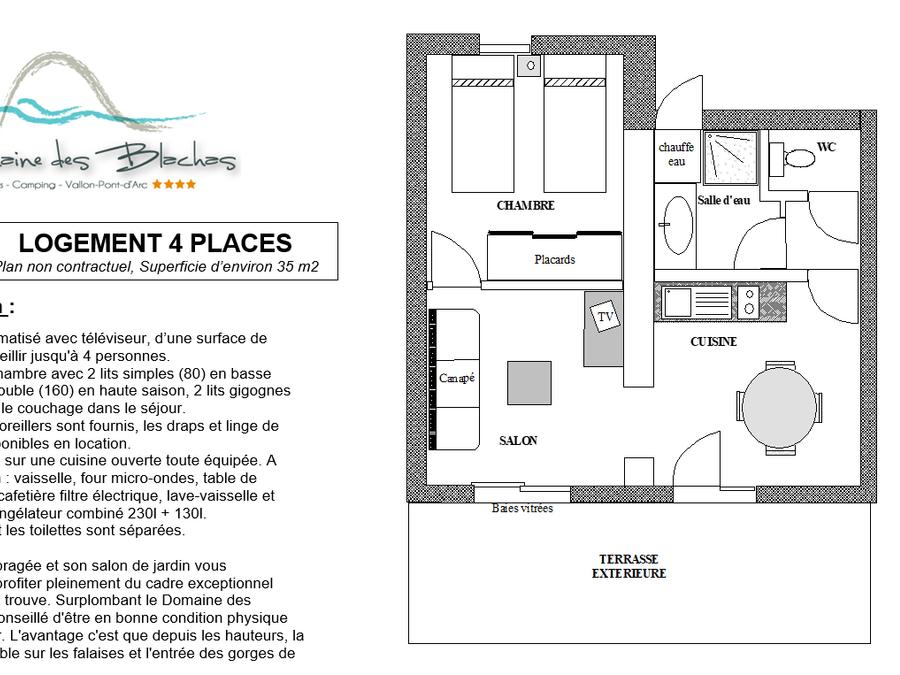- INFORMATION IMPORTANTE : Hébergement pouvant accueillir jusqu'à 6 personnes. Merci de contacter le camping pour ajouter des personnes supplémentaires (option payante).