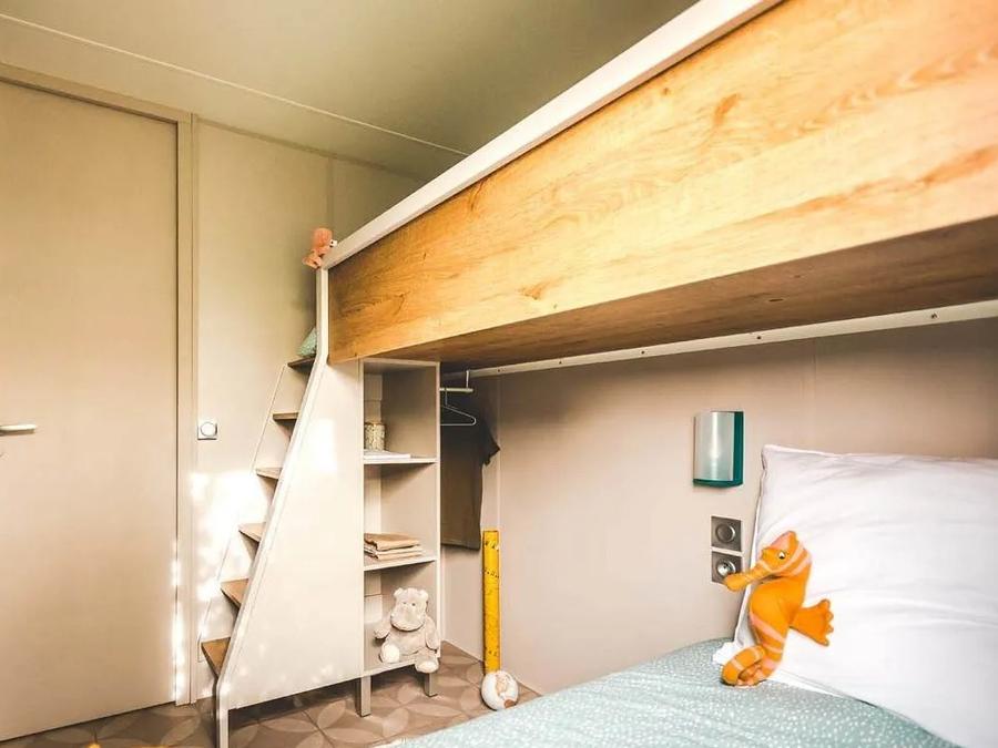 Les tailles de lits mentionnées sont données à titre indicatif. Il est possible d’avoir de légères différences de tailles selon les modèles de locatifs et leurs millésimes. La disposition des lits et la décoration peuvent également varier.