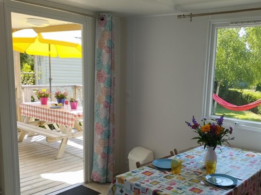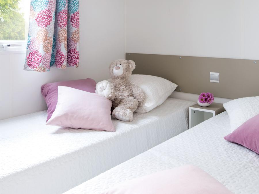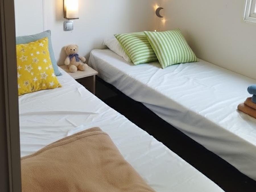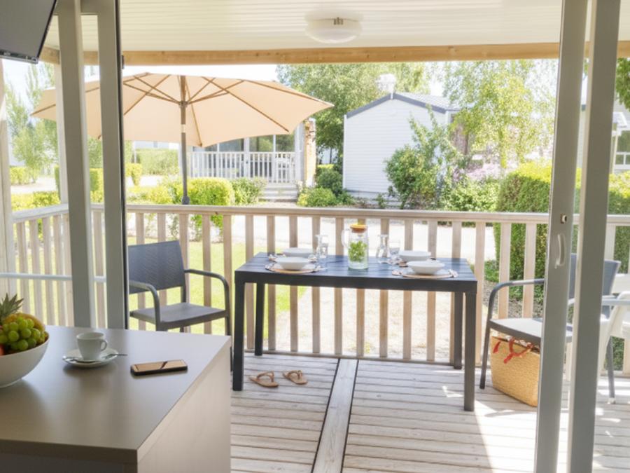 Mobilhome 4 personnes - Côté Confort 25m² (2 chambres) + TV + Terrasse intégrée - Arrivée Samedi