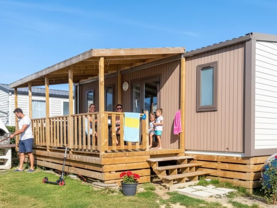 Mobilhome 6 personnes - Premium 32m² (3 chambres) + Terrasse couverte + TV + Climatisation