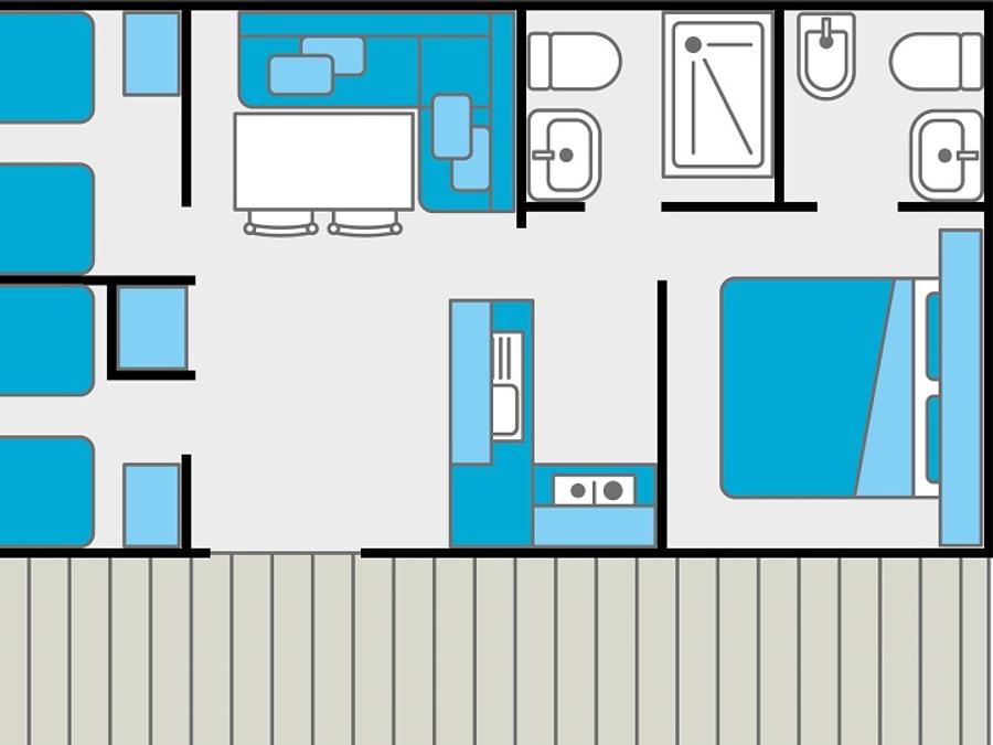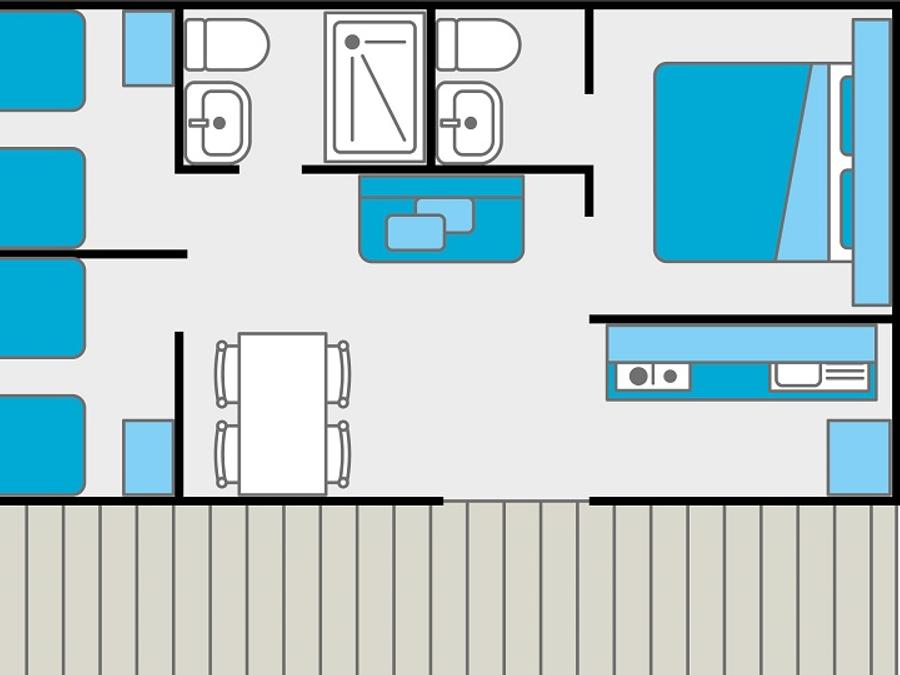 Mobilhome 4 personnes - 3 chambres / 2 sdb - terrasse couverte