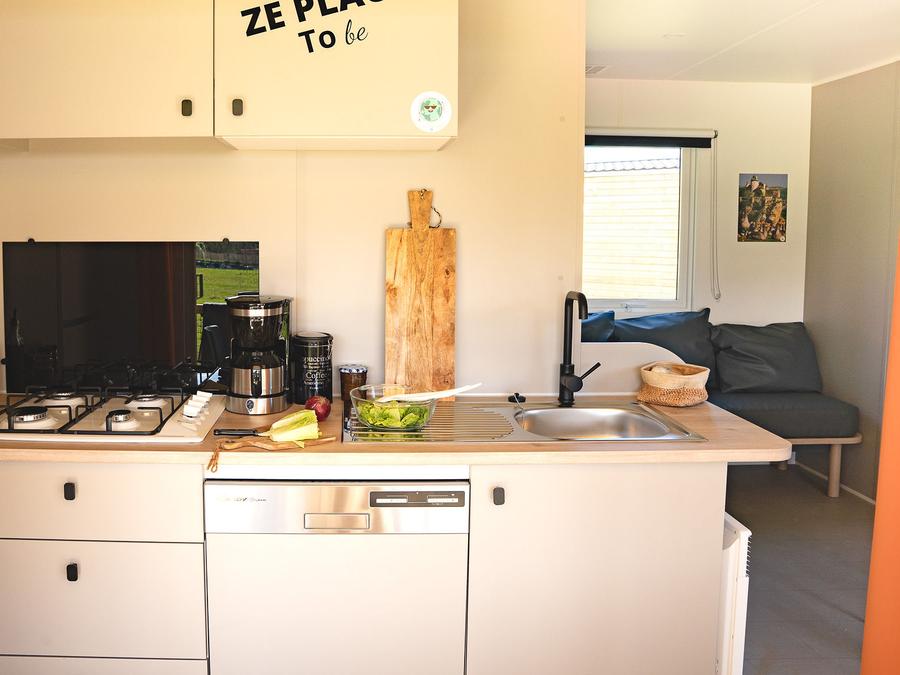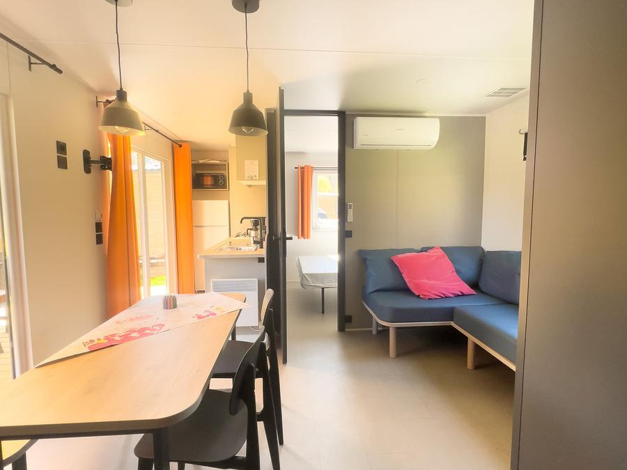 - Les plus : Un mobil-home très récent, dans un environnement arboré, avec le confort d’une cuisine ouverte sur la terrasse, équipé avec climatisation réversible, lave-vaisselle, accès Wifi et même plancha sur la terrasse … Le top du confort !!